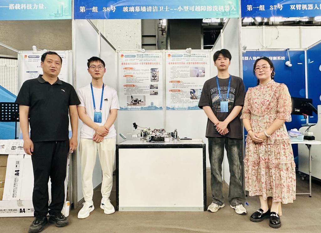 5月28日,湖北省第十四届“挑战杯”大学生课外学术科技作品竞赛终审决赛在武汉纺织大学落下帷幕。汽车工程学院6个参赛作品均得奖项,获奖率100%,其中《玻璃幕墙清洁卫士——小型可越障擦洗机器人》荣获一等奖并入围国赛,《草方格铺草机》《多功能长自持清污船》《全水域无人化环保作业平台》荣获二等奖,《大地卫士——环节驱动探索者》《屋顶积雪克星——智能双螺旋除雪机》荣获三等奖。