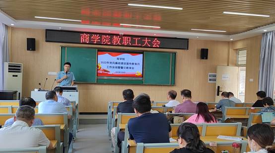 为扎实开展党风廉政建设宣传教育月活动,进一步提高全体教职工守纪律、懂规矩,拒腐防变能力,9月8日下午,商学院党总支组织全体党员开展了党风廉政警示教育活动。