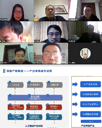 为促进人工智能技术服务专业集群发展,4月2日下午3点,借助腾讯会议网络平台,学校与科大讯飞股份有限公司就如何建设人工智能产业学院召开研讨会。科大讯飞湖北大区副总甘雯松、湖北大区咨询总监许可扬,学校教务处处长刘红新、副处长杨义耀,产学研工作处处长肖兆武、副处长龙耀辉,信息技术学院党总支书记汤才虎、院长王保成等出席会议。