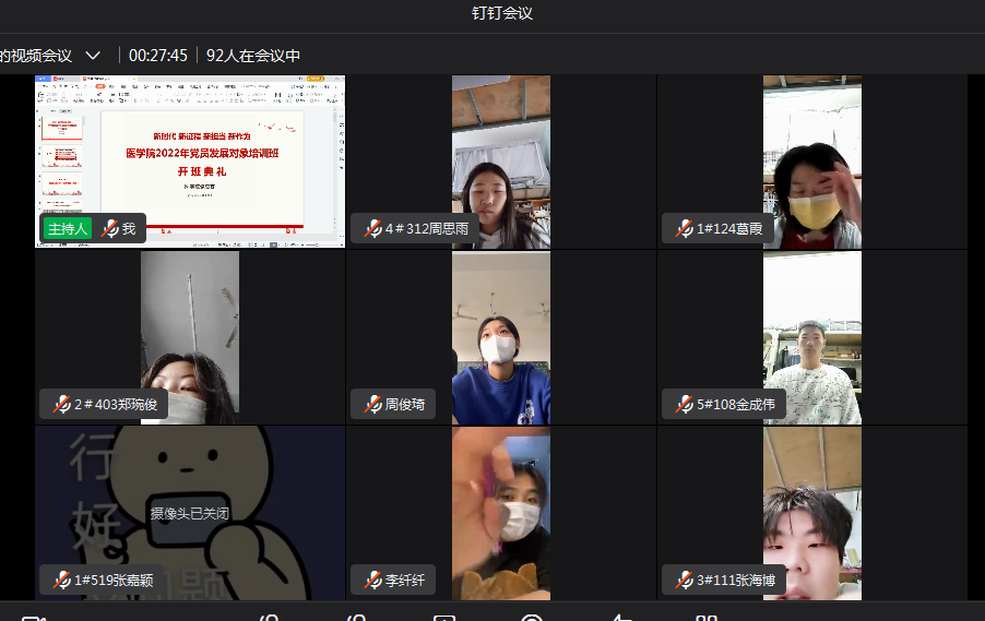 为进一步加强对医学院党员发展对象的培养、教育、考察,严格党员发展程序,保证新发展党员质量,医学院党总支于5月17日下午在钉钉会议上举行了2022年党员发展对象培训班开班仪式。医学院副院长张家忠、各党支部书记及90名党员发展对象参加开班仪式。仪式由组织员肖艳红主持。