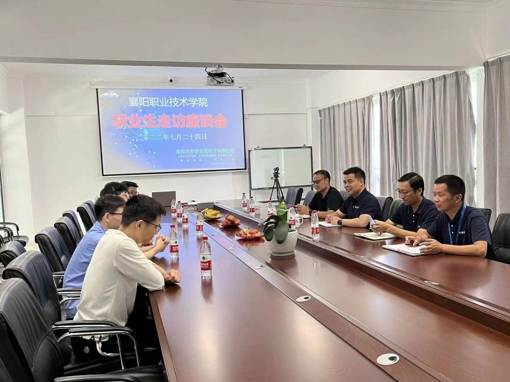 在公司会议室,公司总经理羊有根、行政人事部部长邱凌、人事主管朱怀国、都祥麒等五名毕业生代表参加座谈。向炜表示,一是上半年因疫情原因未能开展实习巡回检查和毕业生回访,此次补上这个遗憾;二是了解企业对毕业生培养质量的看法和需求;三是探讨校企合作下一步合作的方向,为更好实施产教融合创造条件。五名毕业生代表分别讲述了在公司成长和发展的经历,表示公司对同学们很关心,对学校回访表示感谢,他们将努力工作、认真学习,为公司发展和个人成长不断努力。