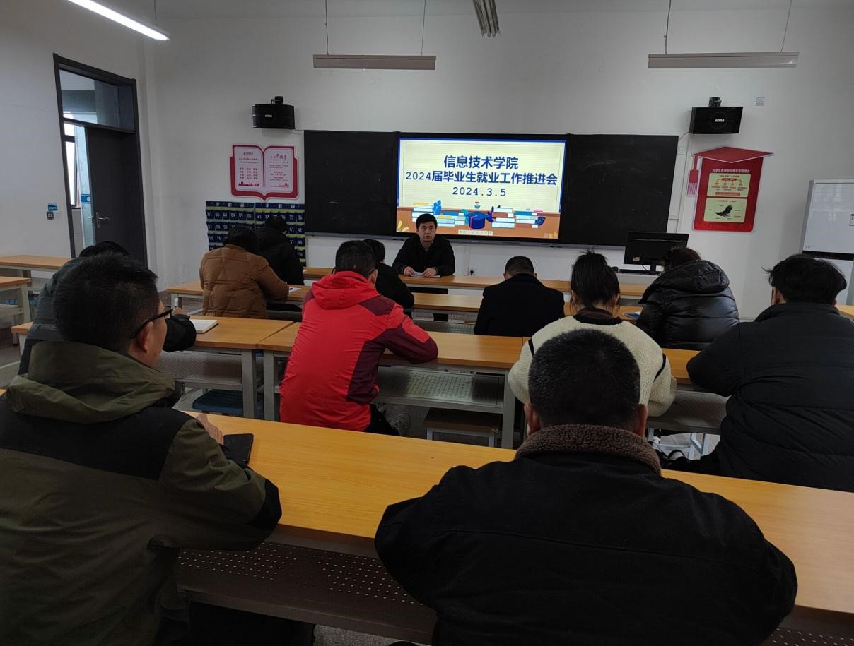 3月5日下午,信息技术学院在B栋401召开2024届毕业生就业专项工作会。就业办及2024届毕业班全体班主任参会。会议由党总支副书记李晓龙主持。