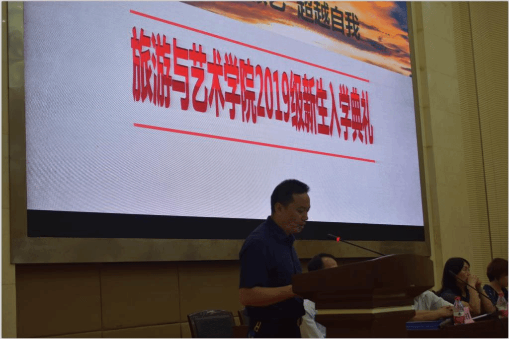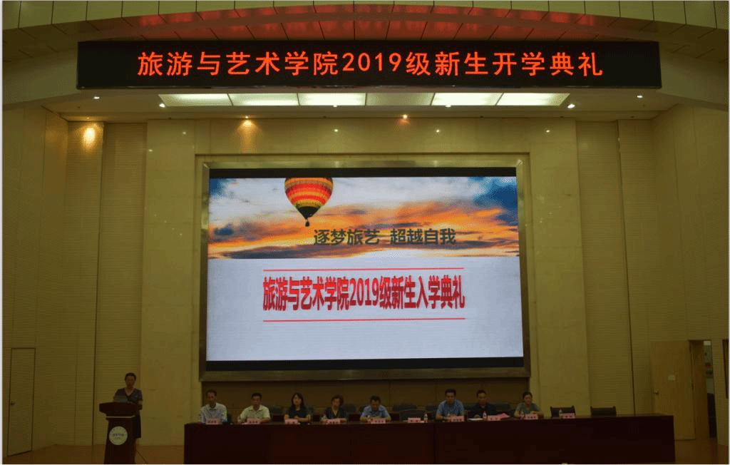 又是丹桂绽放时,襄职金秋分外香!9月6日上午,旅游与艺术学院在图书馆二号报告厅隆重举行2019级新生开学典礼。学校副校长李伶,学工处处长但耀卿、团委书记别菊珍,航宇救生装备集团有限公司集团人力资源部副部长徐银洋出席活动。旅游与艺术学院党总支书记王壮、院长王惠及全体教师和新生参加开学典礼。副院长涂进喜主持仪式。
