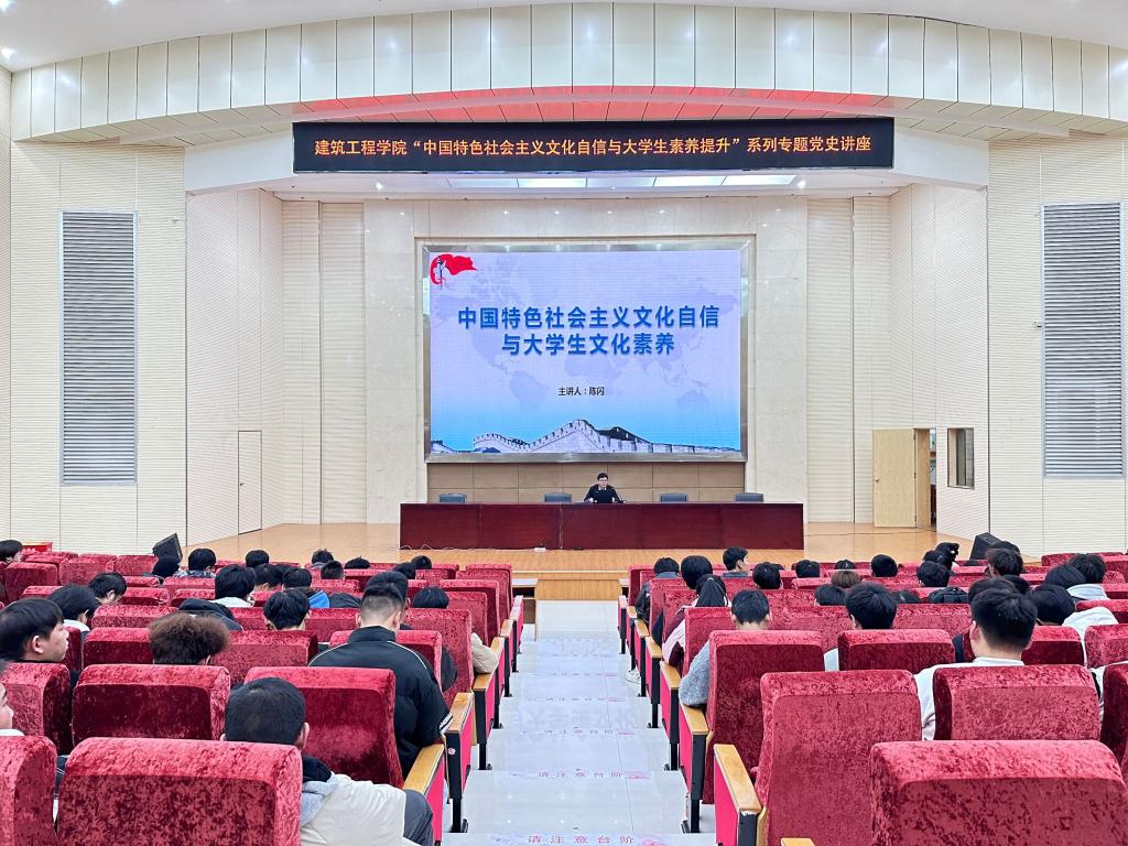 12月5日晚,建筑工程学院在图书馆二号报告厅开展名师讲党史活动。马克思主义学院陈闪老师以“中国特色社会主义文化自信与大学生素质提升”为主题进行分享。建工学院350余名师生参与学习。
