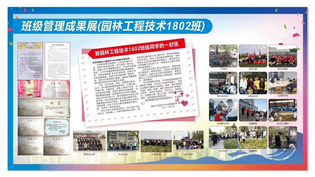 成果展内容包括各项主题教育、活动图片,成长历程、荣誉榜等资料,通过图片、文字、表格等形式,回顾三年时光,记录学子青春的样子、奋斗的姿态。
