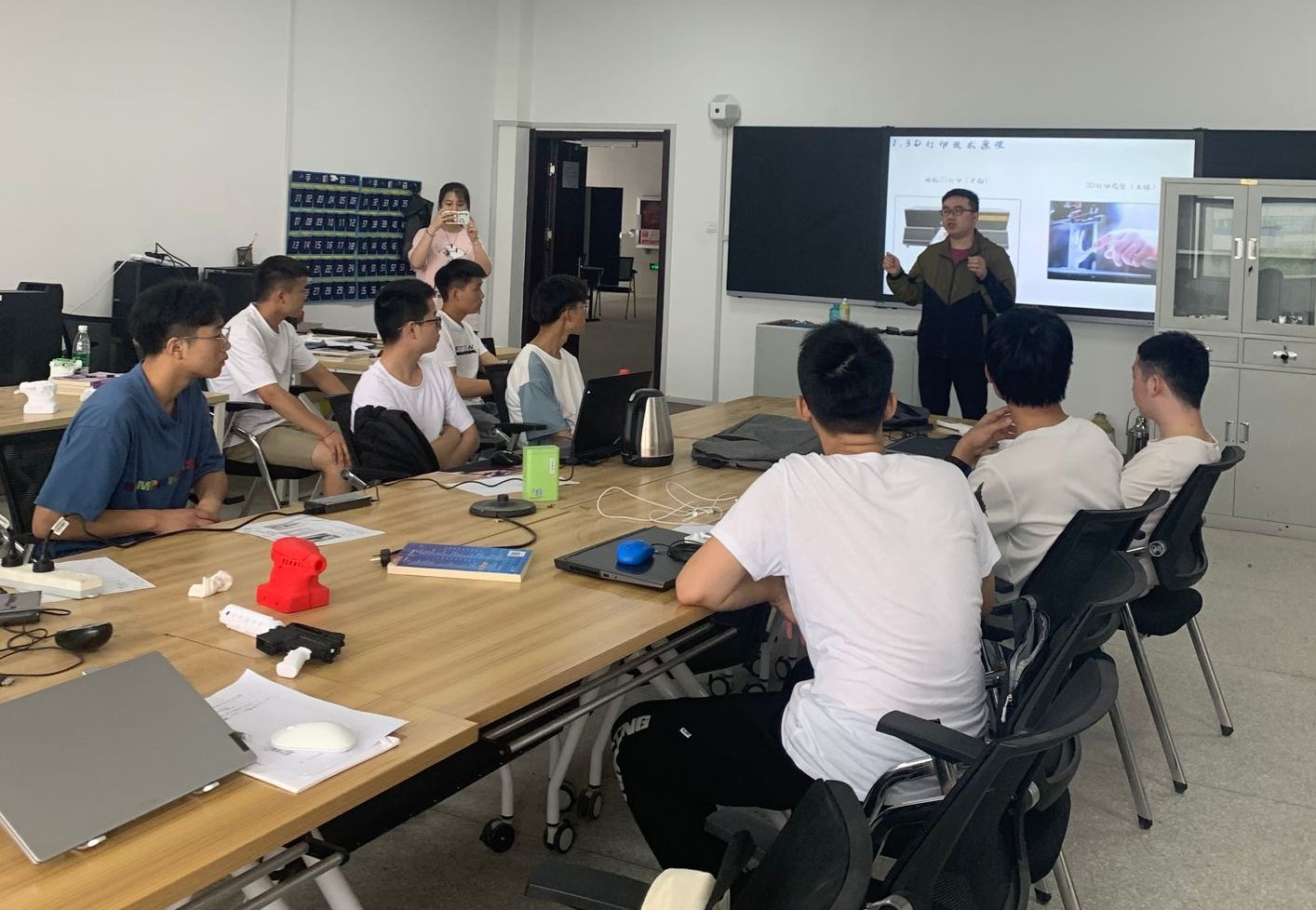 5月13日,华中3D打印快速智造创新中心企业专家白豪、逆向工程师韩旭东来到我校机械创新创客空间,与同学们深入交流。