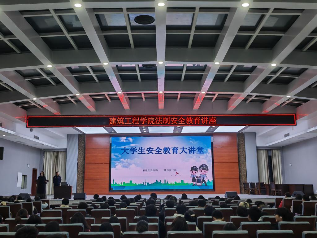 为进一步加强在校师生法治宣传教育,增强安全责任和法律意识,创建平安、文明、和谐的校园育人环境,2月16日晚,建筑工程学院在智能大楼报告厅开展新学期法治安全教育专题讲座。隆中派出所民警于淼应邀主讲。学校保卫处处长赵勇、副处长杨先正出席活动。21级、22级在校800余名学生及班主任聆听讲座。