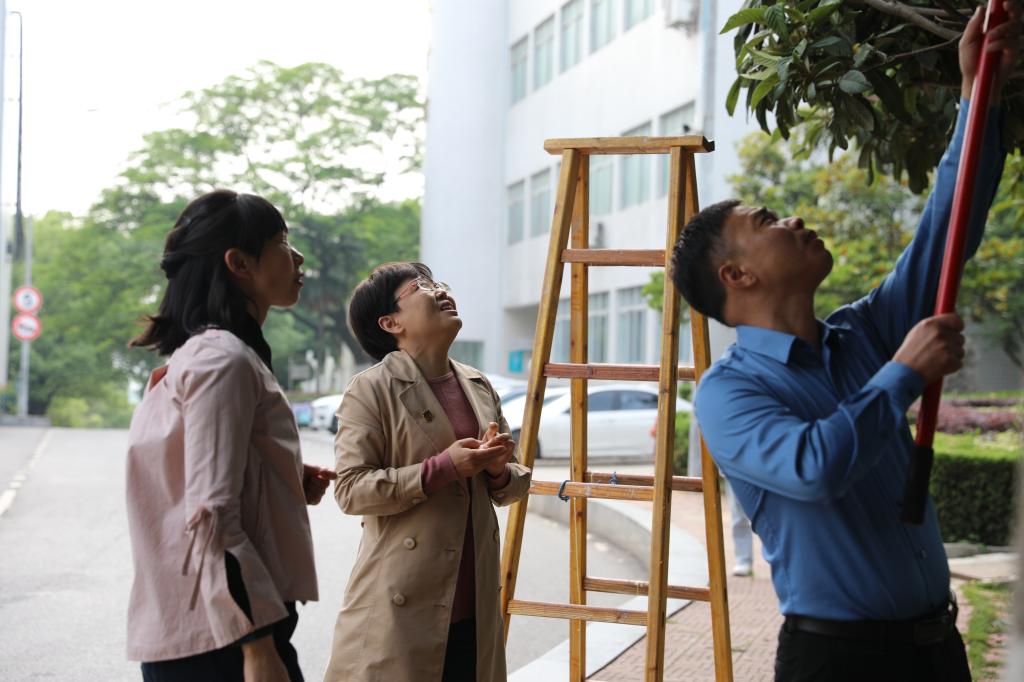 “山坡上的枇杷水分足,果甜味重,很好吃。”党员老师们和同学们穿梭枇杷果树之间,一边采摘,一边品尝,感受着丰收节采摘的乐趣。“我们每年都会来摘枇杷,一来可以享受劳动的乐趣,二来自己种的枇杷比一般的口感要好,吃起来很细腻。陪伴学生本身就是一种最好的教育,让党员老师们和学生们一起收获。一起成长。”副院长陈杰军说。