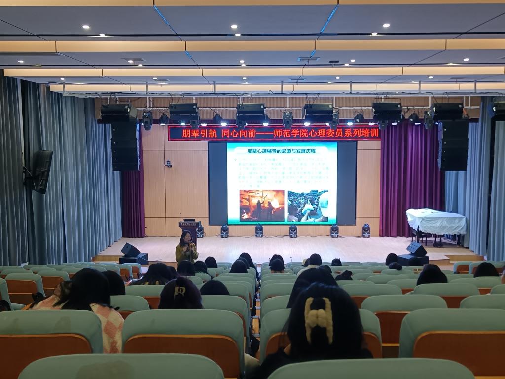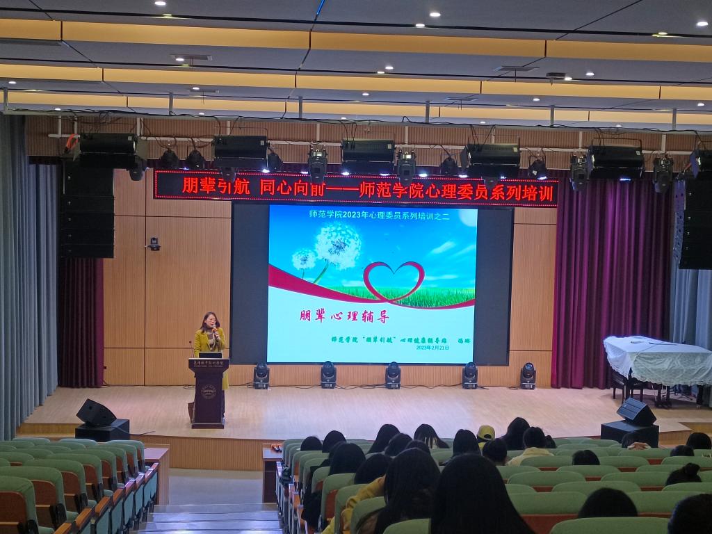 为进一步普及心理健康知识,培养学生健全的人格和良好的个性心理品质,2月21日晚7点,师范学院在博爱楼一楼报告厅开展了以“朋辈引航 同心向前”为主题的师范学院心理委员培训。