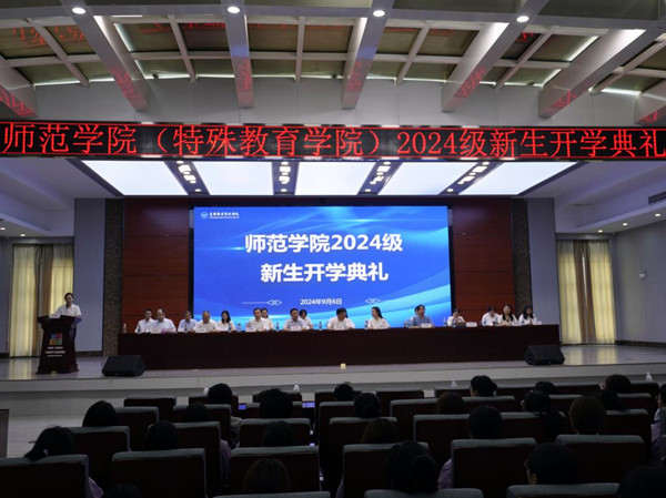 9月6日,师范学院在智能制造大楼四楼学术报告厅举行2024级新生开学典礼。襄阳市隆中名师、优秀校友代表唐莉华,学校副校长耿保荃,教务处处长冯依锋、团委书记何娟,师范学院全体行政人员、全体新生班主任、新进教师、2024级新生参加典礼。活动由师范学院党总支书记张丹主持。