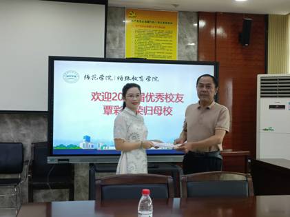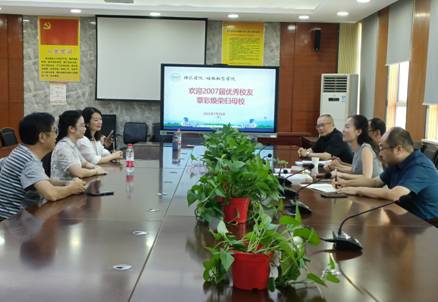 7月29日上午,师范学院在博爱楼四楼会议室召开校友座谈会。受邀回母校为襄阳市家庭教育指导骨干教师作培训的2007届优秀毕业生覃彩焕受表彰。学校校友办刘明辉,师范学院党总支书记张丹,副院长彭建设、吴卫明为其颁发证书并赠送优秀校友事迹册。