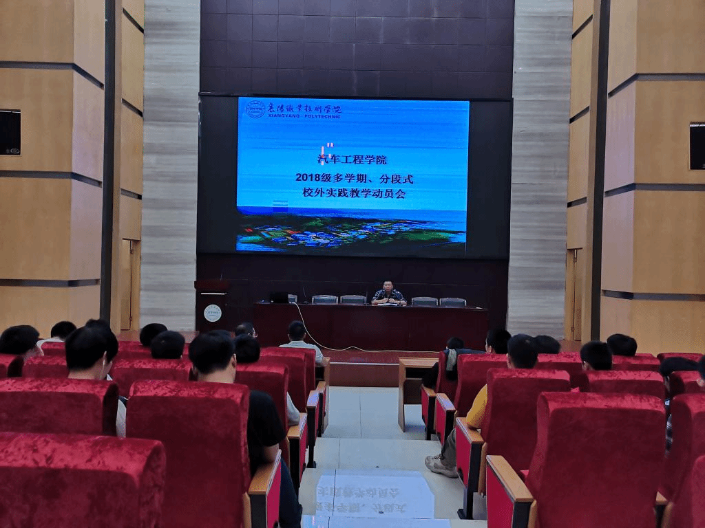9月28日,汽车工程学院在图书馆1号报告厅开展了2018级机电一体化、新能源汽车等专业“多学期、分段式”校外实践教学动员会。党总支书记李先国、院长程洪涛、专业主任、2018级班主任及学生参加了此次动员会。会议由李先国主持。