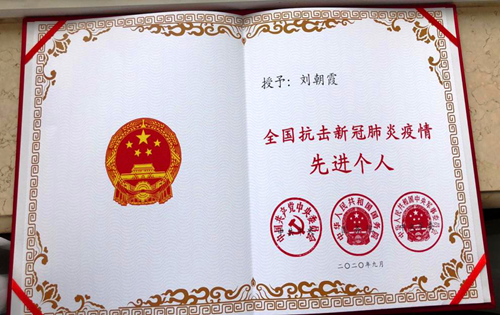 2020年,抗击新冠肺炎疫情期间,刘朝霞表现卓越,被党中央、国务院、中央军委授予“全国抗击新冠肺炎疫情先进个人”称号。当天,她以“护理成就的锻造”为主题,详细介绍了护理专业的发展以及个人的成长史。据介绍,刘朝霞曾带领团队参加省级比赛,并在院内创新了中医护理服务。