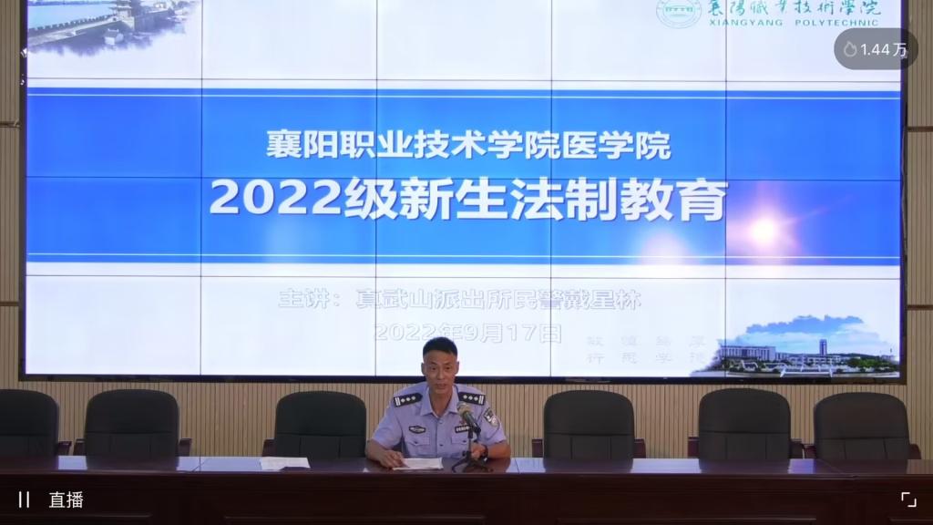 为切实增强医学院2022级新生的安全防范意识,全面提升学生的自我保护能力,进一步维护校园的安全、和谐与稳定,近日,医学院特别邀请了襄城区真武山派出所戴星林警官,举行线上法制与安全教育专题讲座。医学院2022级全体新生聆听讲座。