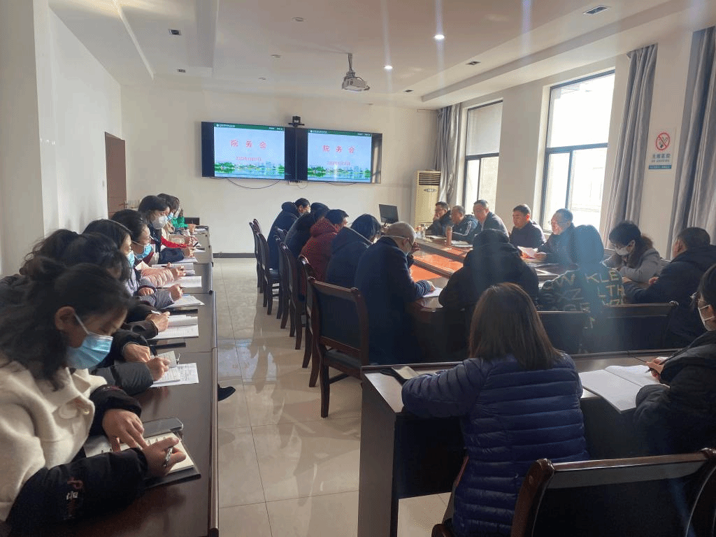 1月31日上午,附属医院召开春节后院务会。医院领导班子、职能部门负责人、各科主任、护士长、各支部书记40余人参会。