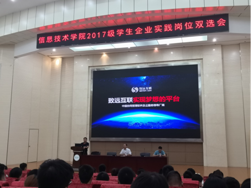 8月17日上午,信息技术学院在图书馆成功举办2017级学生企业实践岗位双选会。来自北京致远互联有限公司、湖北统讯智能科技有限公司、杭州东信网络技术有限公司、南京嘉环科技有限公司等十多家用人单位参加现场双选,为2017级学生提供500多个企业实践岗位。