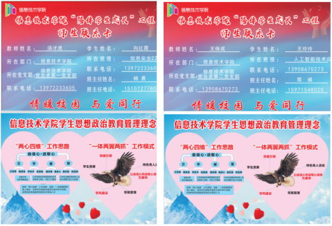 活动仪式上,信息技术学院党总支宣传委员沈友明介绍学院“陪伴学生成长”工程落实情况和陪伴学生成长典型案例,党总支组织委员张坤宣读陪伴成长师生结对名单,团总支书记陶麒芸分享了陪伴学生成长故事。之后,组织员贾晓鸣将提前精心制作好的“联系卡”发给了结对教师和学生,结对教师和学生进行了面对面交流。交谈中,老师们进一步了解掌握了帮扶学生的思想动态、学业情况、生活现状、人际交往、家庭状况等,并对他们提出的疑惑集中予以疏通解答。