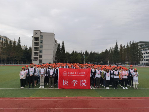 10月26日下午,“盛世唐城”2019襄阳马拉松医疗志愿者誓师大会在医学院足球场举行,651名医疗志愿者及带队老师集体宣誓。医学院党总支副书记何娟、副院长杨雷、学工科科长栗财、团总支书记周敏参加誓师大会。