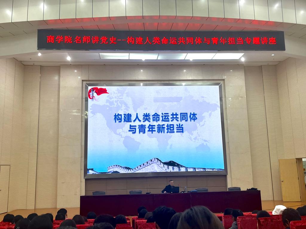 11月9日晚,商学院在图书馆二号报告厅开展“构建人类命运共同体与青年新担当”名师讲党史活动。马克思主义学院彭亦鹏老师应邀主讲,400余名师生共同聆听。