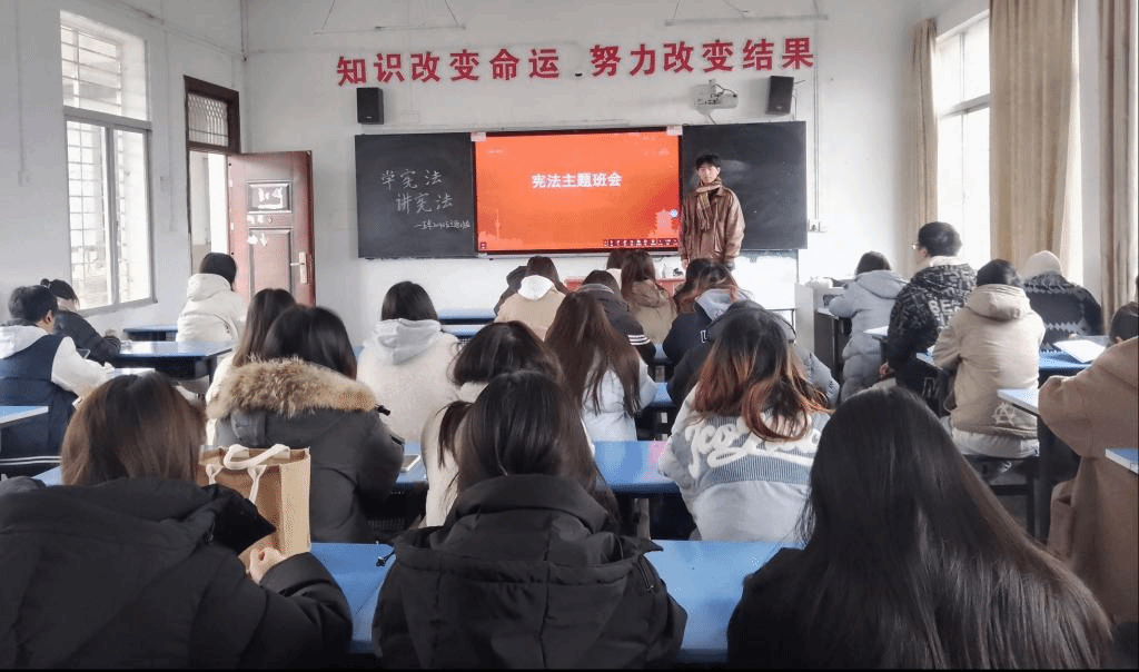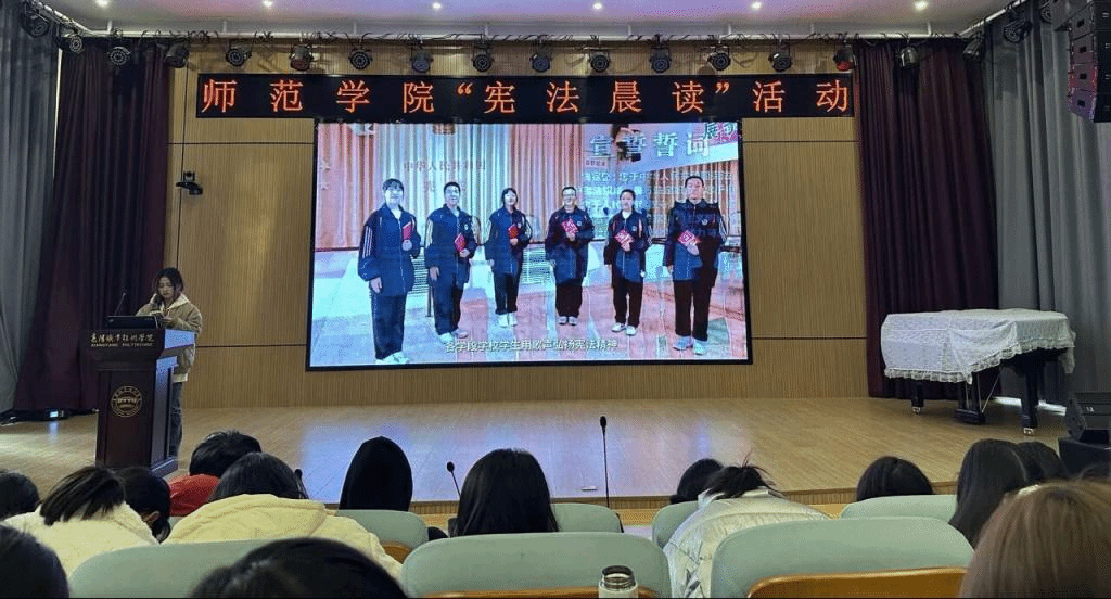 引导全体在籍学生线上参加“宪法卫士”学习,参学率达到99%;组织全体在校班级开展“学宪法 讲宪法”主题班会;12月4日上午,组织无课同学在博学楼演播厅集中观看普法网直播,开展“宪法晨读”活动;持续开展《宪法伴我们成长》歌曲传唱活动,充分发挥宪法主题歌曲的教育作用;在公众号推送《大力弘扬宪法精神,建设社会主义法治社会》推文等,努力提升学生参与宪法学习活动的积极性,提高学生宪法意识和法治观念,营造“知法、懂法、守法、用法”良好氛围。