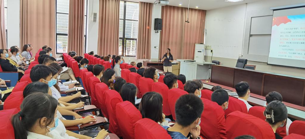 9月29日下午,马克思主义学院副教授闵德美以“以史为鉴开创未来,夺取全面建成社会主义现代化强国新胜利”为题,在阶一教室为医学院师生代表作“七一”重要讲话精神宣讲。