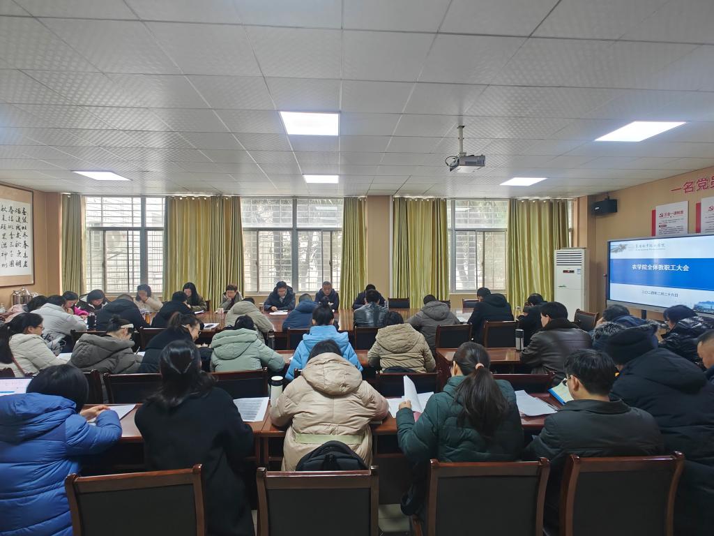 2月26日下午,农学院在健行楼一楼会议室召开新学期教职工大会,部署新学期各项工作。全体教职工参加会议。会议由党总支书记汪志涛主持。