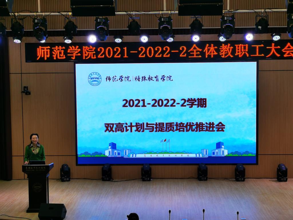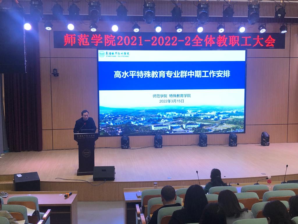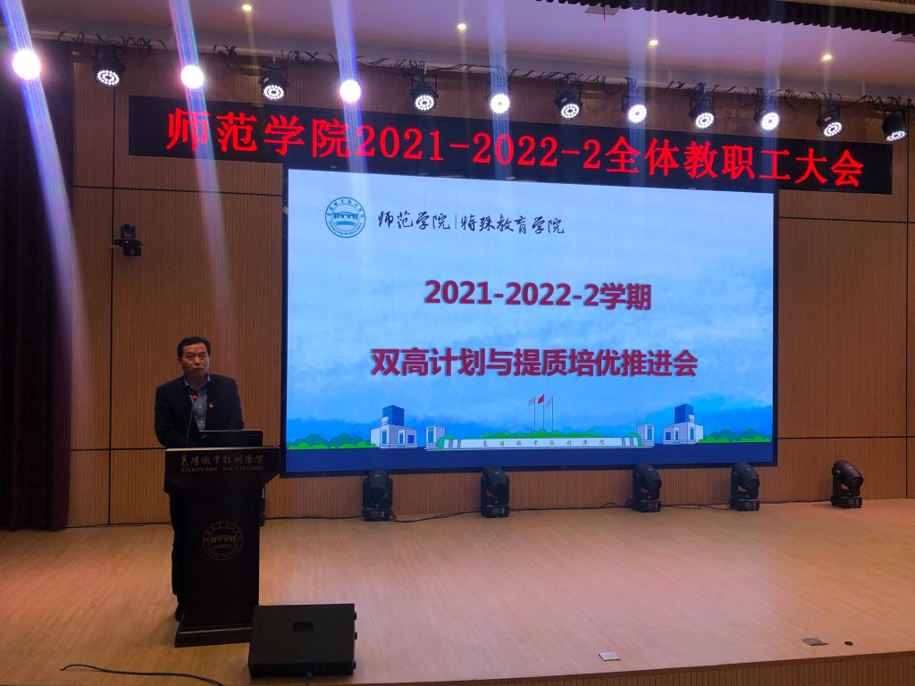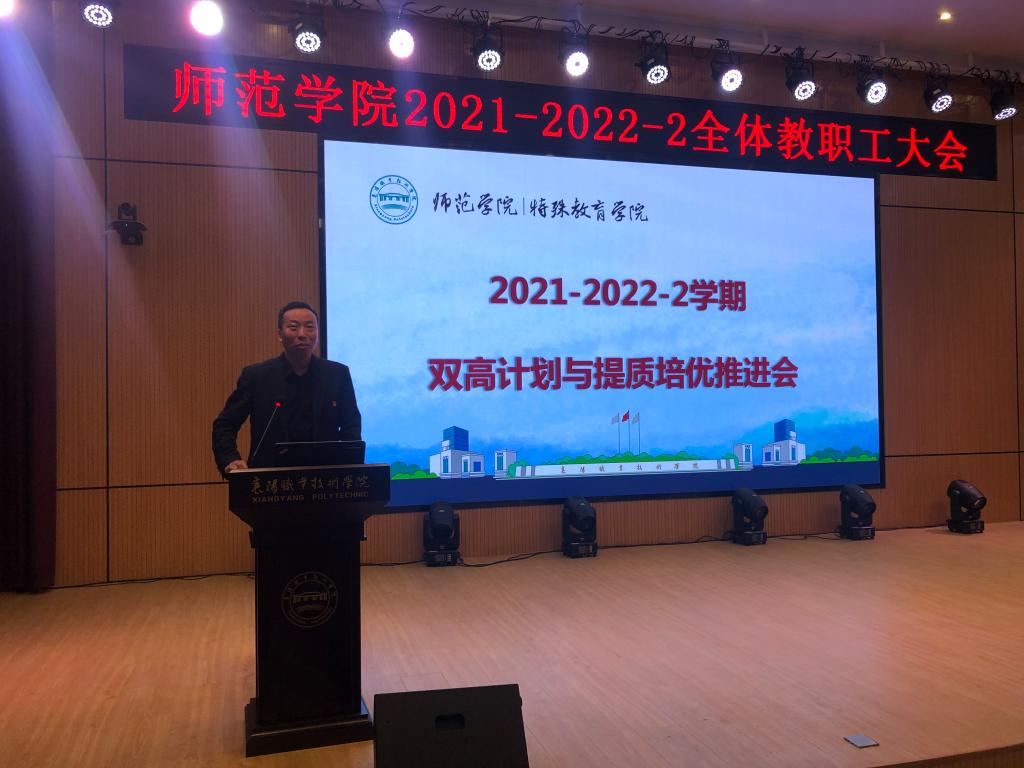 3月15日下午两点半,师范学院在博学楼演播厅组织召开了全体教职工大会,对“双高“计划与提质培优工作作中期推进专题部署。会议由院长刘红新主持。学校副校长余荣宝、评建办主任罗纯等应邀与会指导。