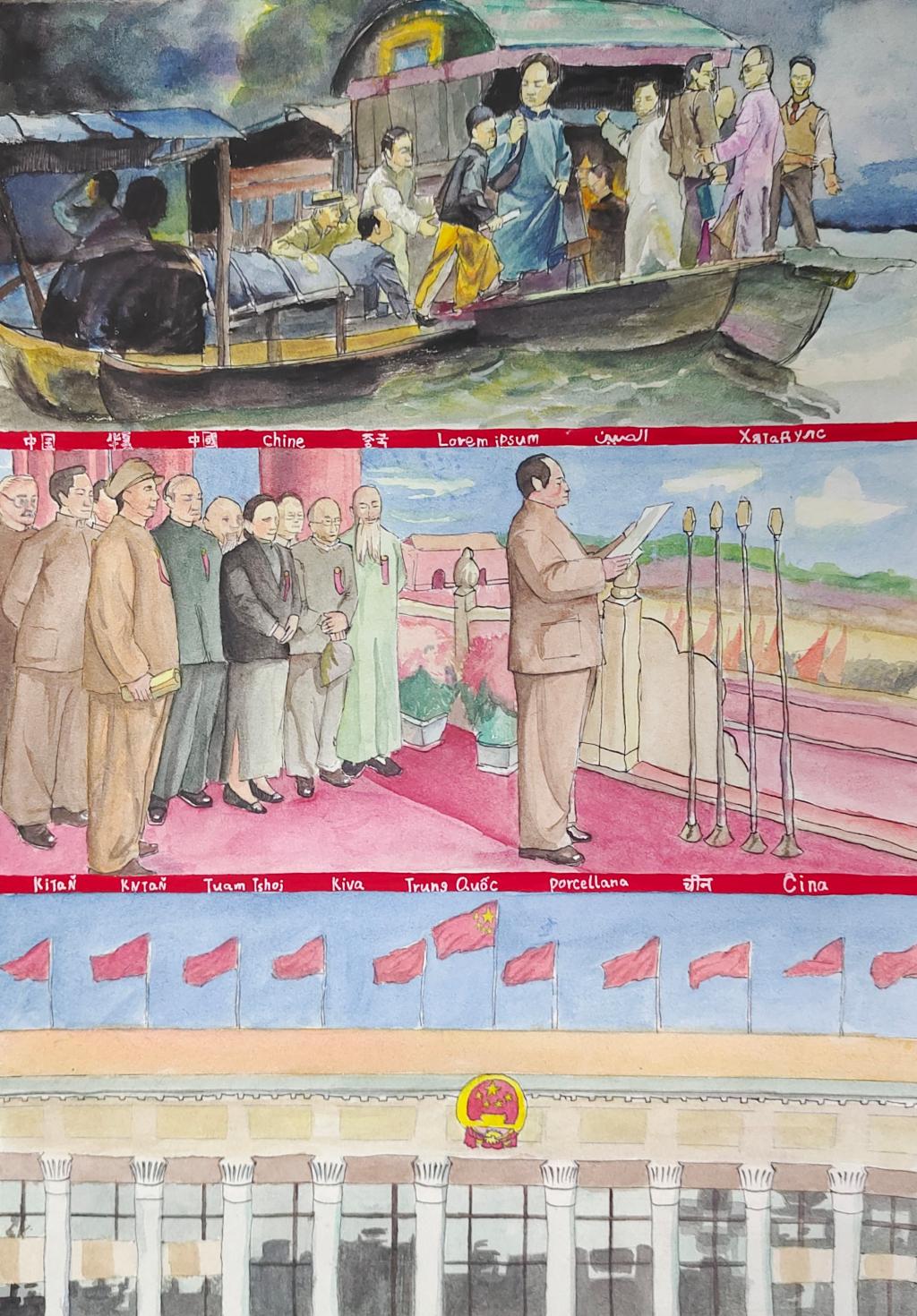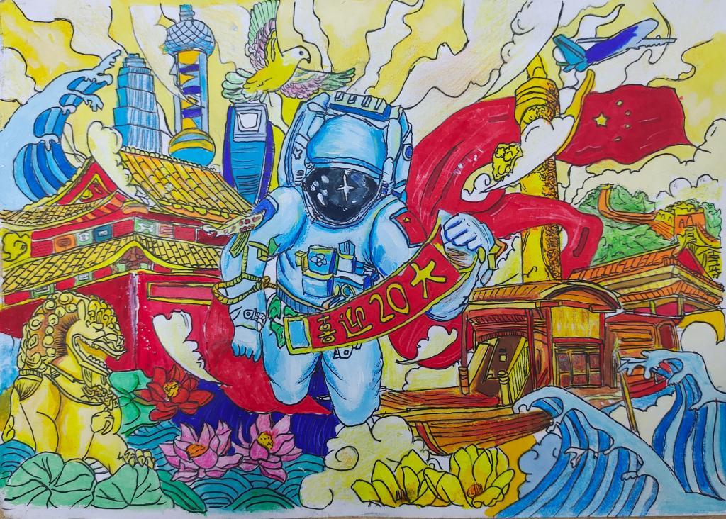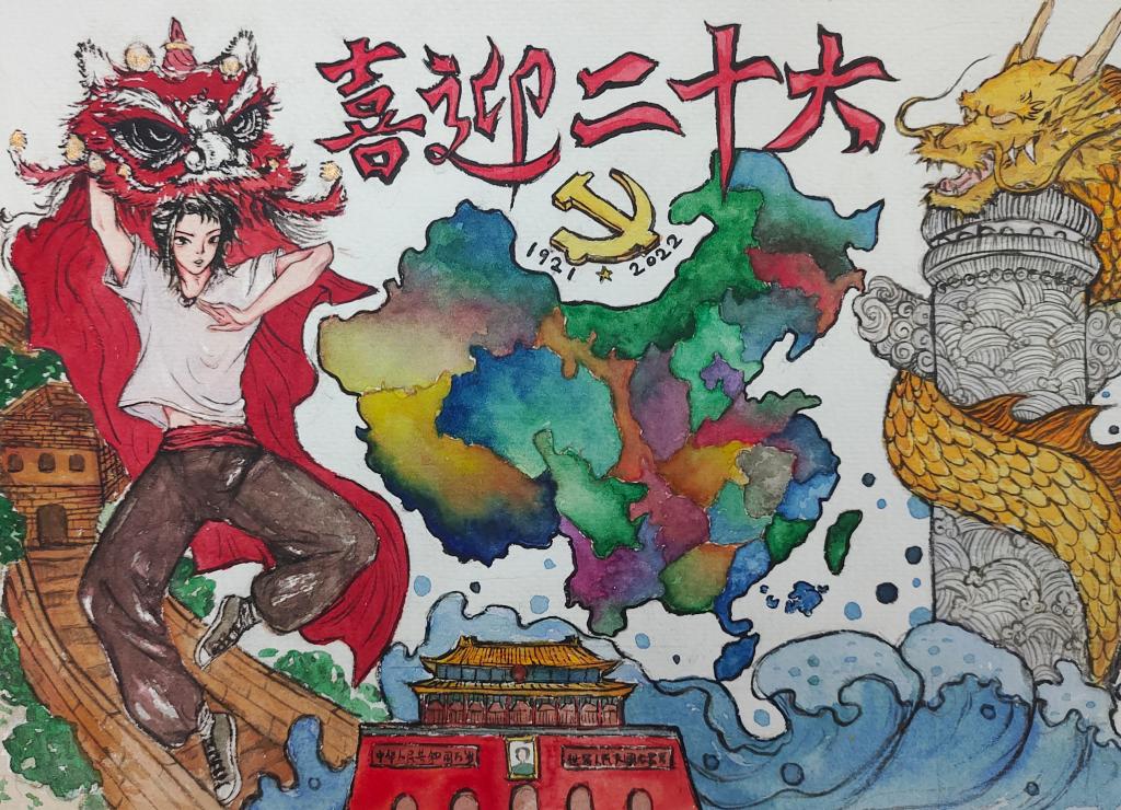 本次绘画大赛面向全体学生征集作品,共收到绘画、手抄报等形式的参赛作品50余幅,最终选出20余幅展示。展出作品主题鲜明、内容丰富,充分展现了在党的坚强领导下,党和国家取得的历史性成就、人民美好生活发生的历史性变革,描绘出青年学子对盛世中华的美好愿景。
