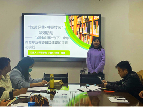 11月21日下午6时30分,中专部邀请师范学院杜娟,为全体班主任作《“悦读经典,书香致远”系列活动——“卓越教师计划”下小学教育专业书香班级建设的探索与实践》精品工作交流会。会议由中专部学工科科长徐琛主持。公共课部(中专部)党总支书记陈建波、副书记杨森,团总支书记王亚斯及学工科人员参加会议。