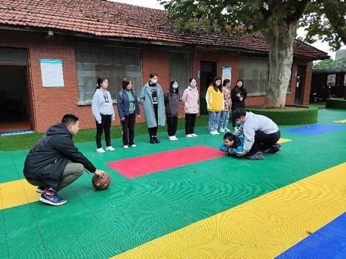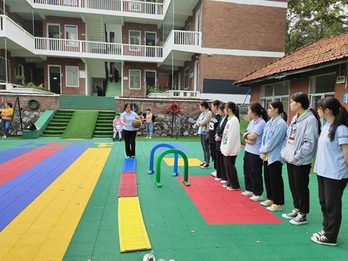 指导教师示范感觉统合训练。