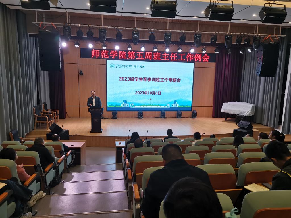 10月6日,师范学院召开2023级学生军训专题工作会。师范学院党总支书记张丹,副院长彭建设、吴卫明、杨海曼,全体辅导员,2023级班主任参加会议。
