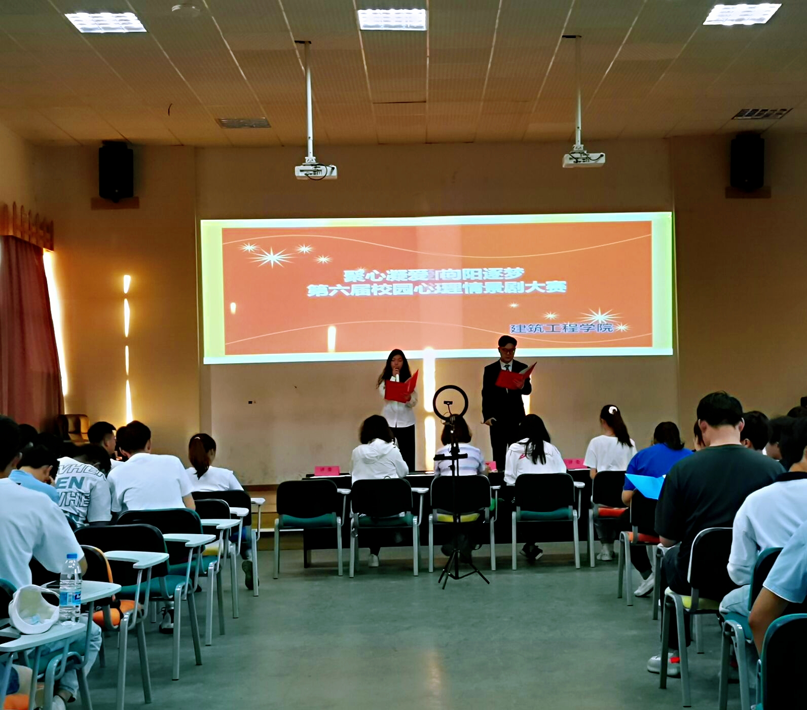 为进一步提升心理育人工作质量及成效,宣传普及心理健康知识,积极响应学校心理咨询中心的号召,建筑工程学院于5月5日晚在集美楼401举办“聚心凝爱·向阳逐梦”校园心理情景剧大赛。建筑工程学院学生工作部部长李襄静、学生工作部杨芳老师、班主任代表邵爱民老师、心理辅导老师易秋节以及心理协会负责人闵慧君担任评委。