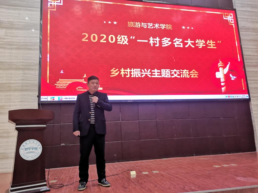 12月16日晚,旅游与艺术学院“一村多”学员在图书馆1号报告厅举办了乡村振兴主题交流会。来自2020级5个班级的10名学员分别就美丽乡村、乡村旅游、产业规划等主题演讲交流。旅游与艺术学院党总支书记王壮、学工副院长涂进喜、旅游管理研究室主任张素华、“一村多”事务办公室曹国英担任评委。活动共评选出特等奖1名、一等奖2名、二等奖3名、三等奖4名。