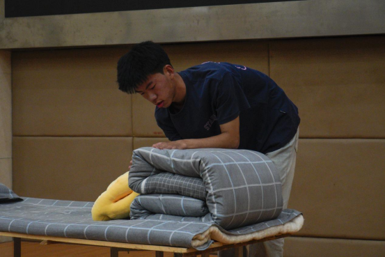 赛后,同学们说:“经过内务整理培训,寝室生活用品摆放得井然有序,床铺整理得干净平整,被子叠得棱角分明,我们生活得更舒心啦。”
