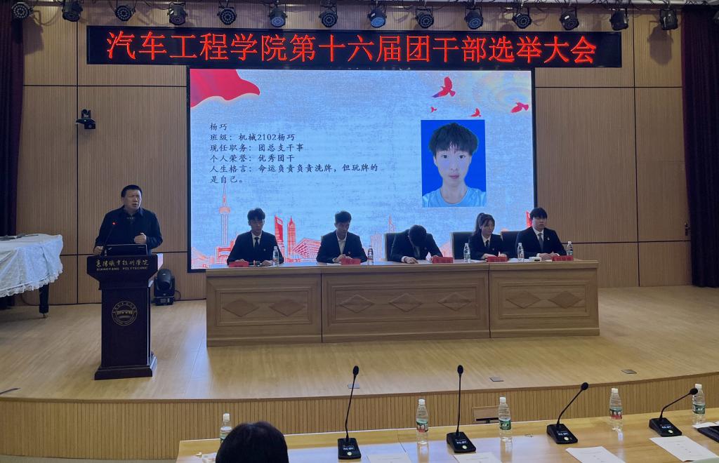 11月11日下午,汽车工程学院团总支第十六届学生团干换届选举大会在博学楼报告厅隆重举行。本次大会由团总支副书记高瑞主持。汽车工程学院党总支书记李先国、副院长魏赤文、组织员胡升耀以及团总支负责人孙兆轩参加大会。