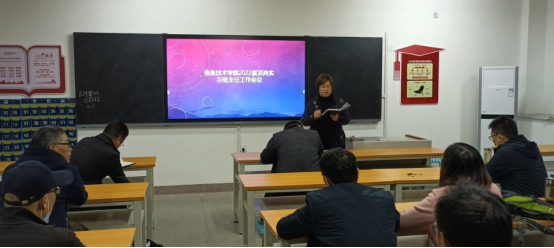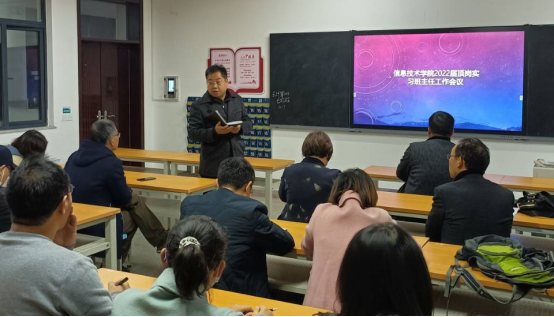 11月17日晚,信息技术学院在智造工业中心B506教室召开2019级班主任工作会议。党总支书记汤才虎、副院长张坤、就业办主任何平到会,张坤主持会议。