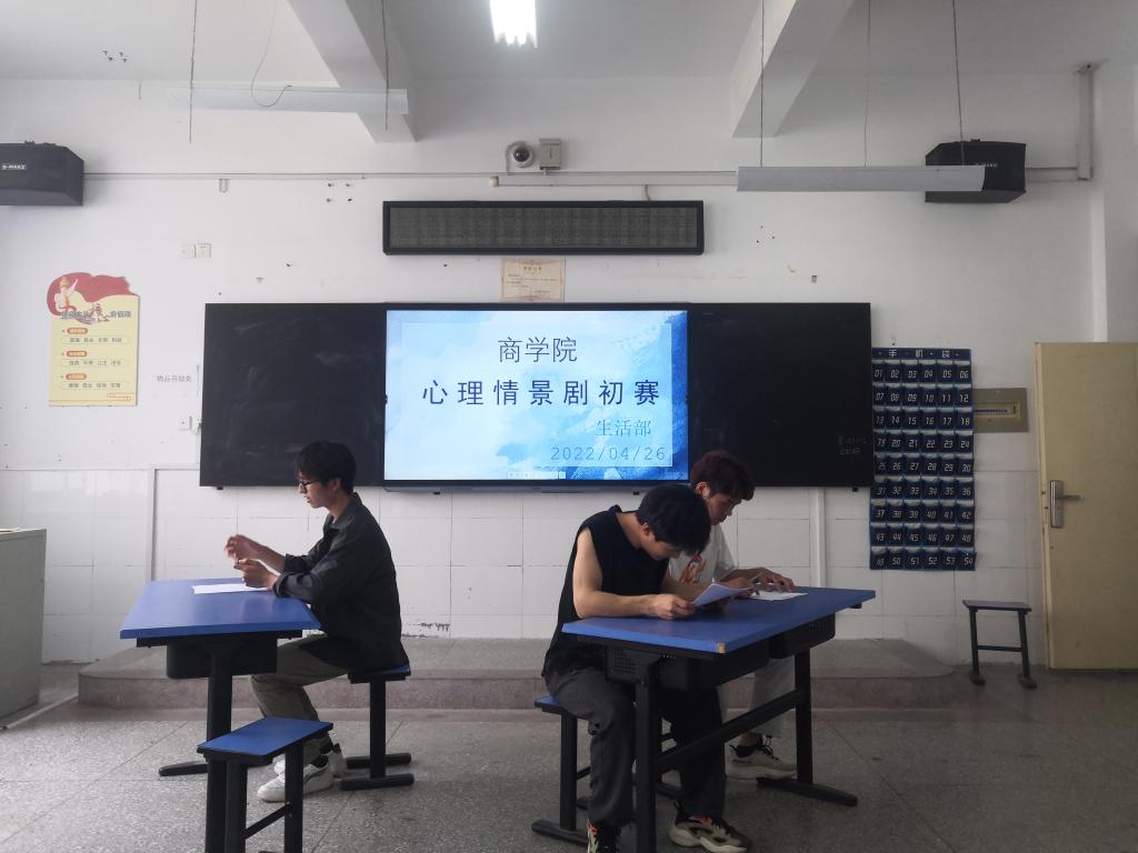 本次比赛分初赛、复赛两轮。初赛于4月27日晚在笃学楼举行。同学们把在生活、学习、交往中的冲突、烦恼、困惑等,以角色扮演等方式,编成小剧本进行表演,剧中融入心理学知识和技巧。最终,5个节目晋级复赛。