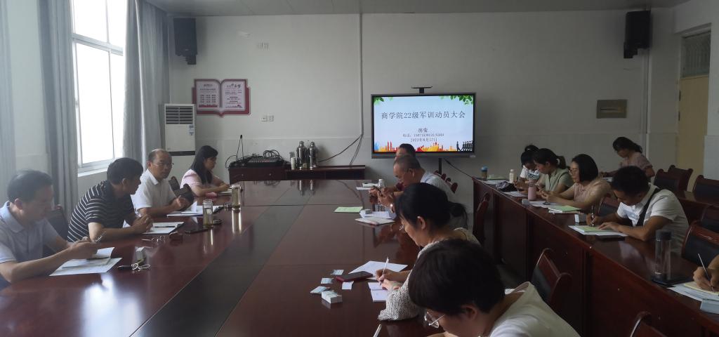 8月17日下午,商学院在会议室召开22级学生军训补训工作会议。商学院党总支书记王建宏、副院长梁光源、学工科长房莹、学工科老师及22级全体班主参加此次会议。