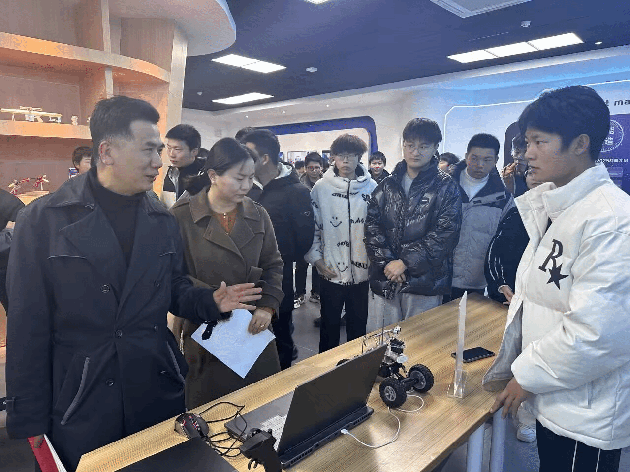 11月30日下午,汽车工程学院在智能智造体验馆举行第十七届科技文化节,学校党委副书记程光富、学工处处长但耀卿、校团委书记何娟、汽车工程学院党总支书记王群、副院长韩向东现场参观指导。