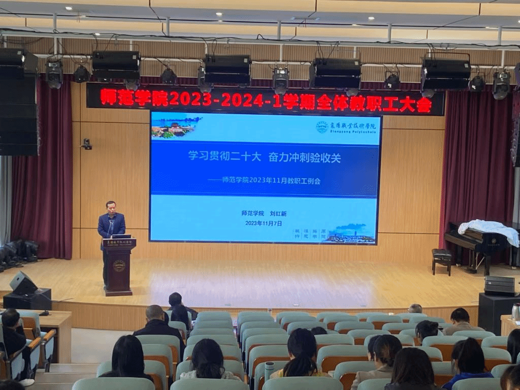 11月7日下午,师范学院在博学楼演播厅召开当月全体教职工大会。会议由副院长吴卫明主持。