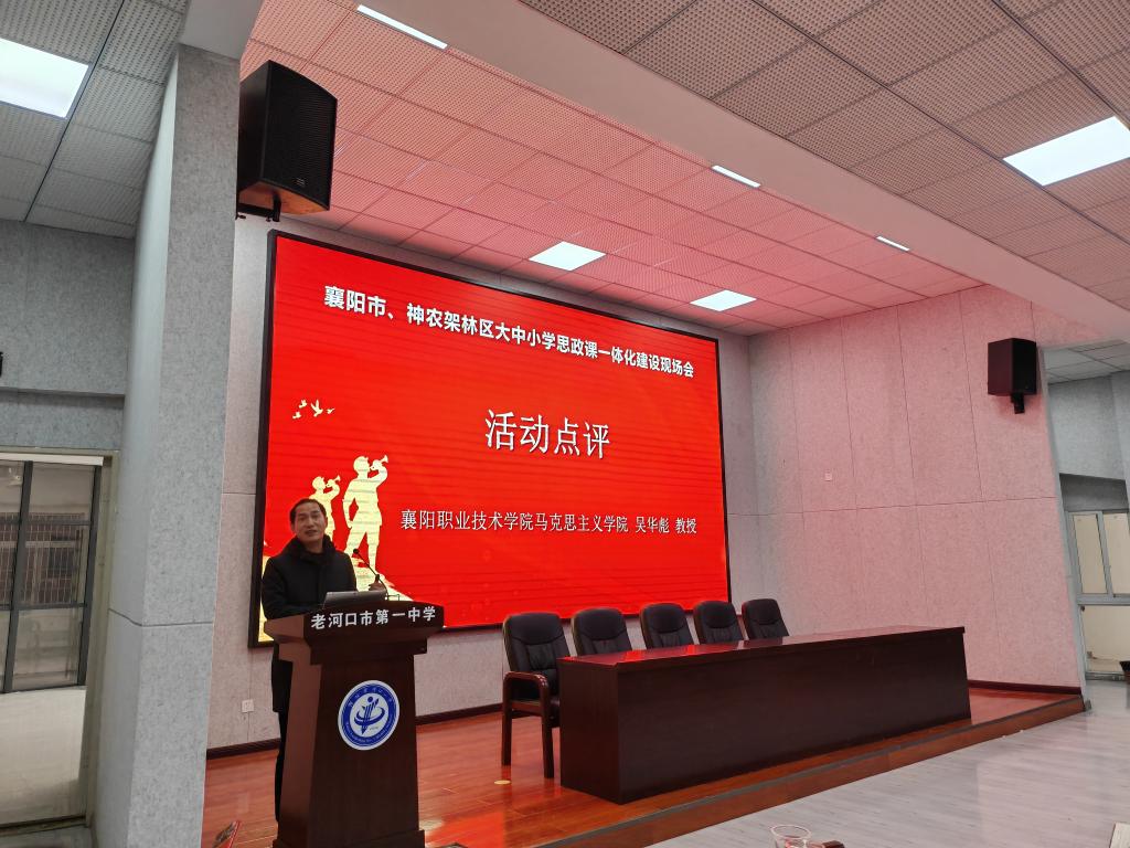 11月29日,襄阳市与神农架林区的大中小学思政课一体化建设指导委员会联合在老河口市召开大中小学思政课一体化建设现场会。马克思主义学院党总支副书记魏赤文和吴华彪教授等参加活动。据悉,我校是老河口市大中小学思政课一体化建设牵头单位。