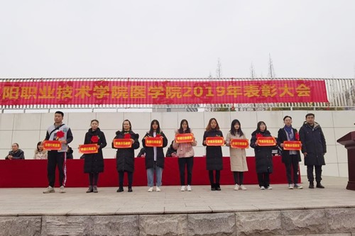 1月2日下午,医学院在南校区操场召开2019年先进集体、先进个人表彰大会。党总支书记佘传江、副书记何娟,副院长张家忠、张静宇、杨雷,全体班主任及在校学生参加大会。