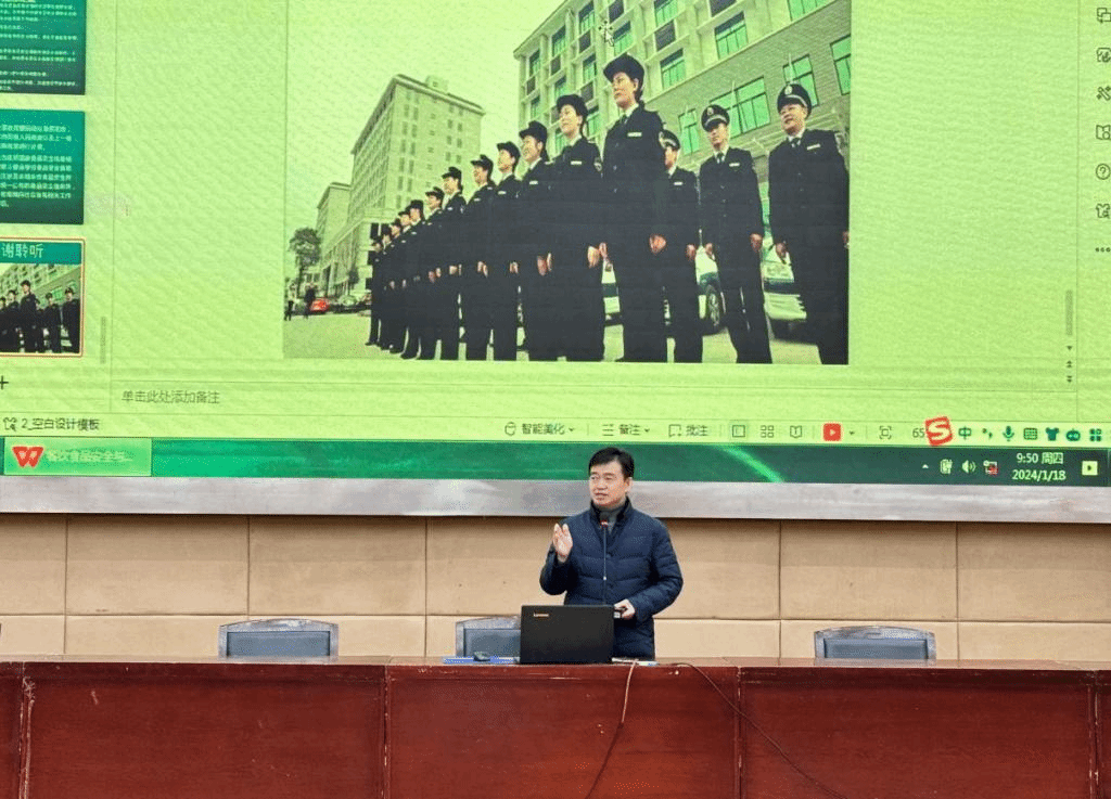 1月18日上午,后勤产业服务总公司在图书馆二号学术报告厅开展食品安全培训,邀请襄城区市场监督管理局副局长周拥军为学校食堂、档口及商铺全体工作人员授课,会议由副总经理柯飚主持。