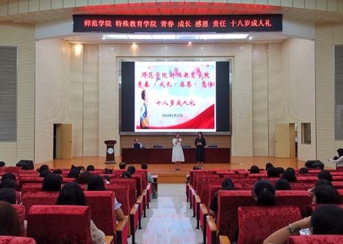 5月22日晚,由师范学院(特殊教育学院)、农学院举办的“青春 成长 感恩 责任”十八岁成人礼在图书馆二号学术报告厅举行。师范学院党总支书记张丹、副院长彭建设、团总支书记王雷,农学院学工科科长陈杰军及辅导员、班主任共同见证了这一难忘的时刻。
