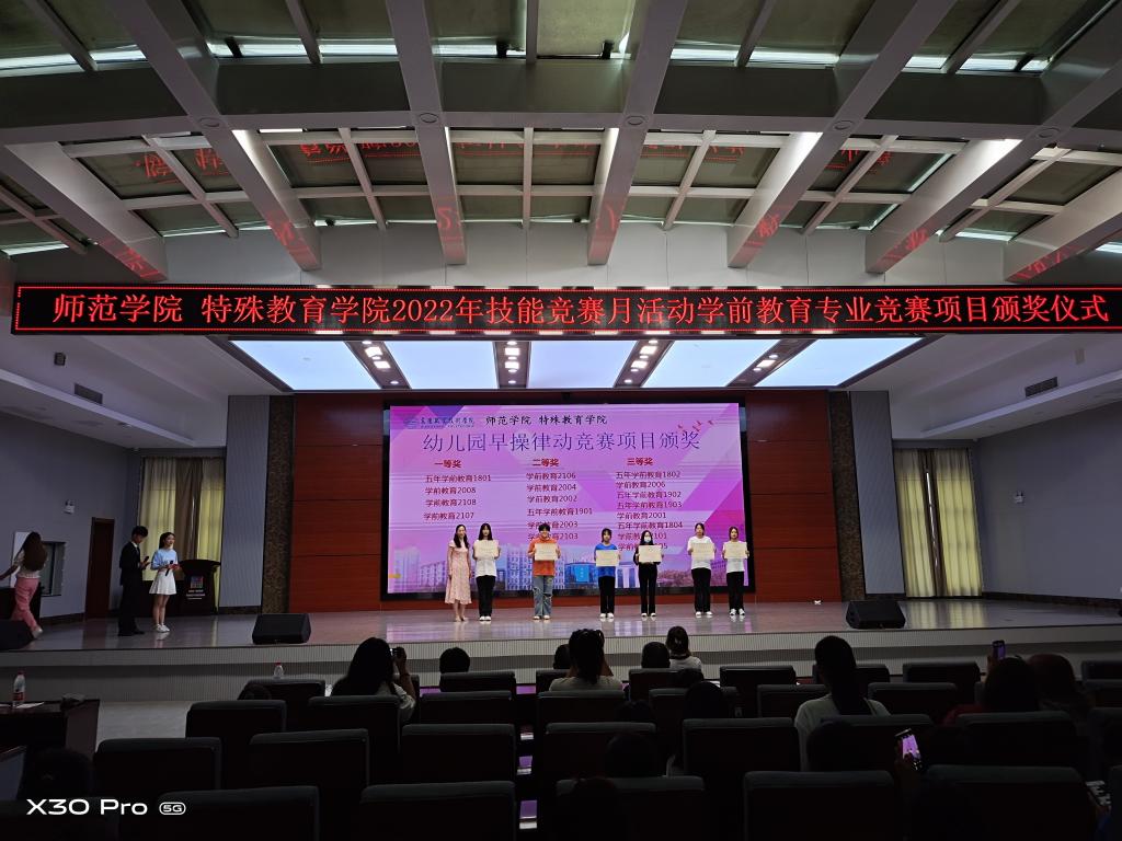 6月12日下午,师范学院在智能制造大楼四楼报告厅举行学前教育专业2022年技能竞赛月总结表彰活动。学前教育专业35个班级近200名获奖学生代表参加活动。师范学院党总支书记张丹、特殊教育学院院长马仁海,师范学院副院长吴卫明、李兴兵等到现场为获奖团队颁奖。