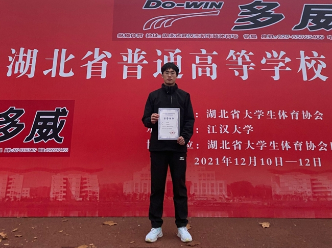 此次省运会由来自湖北省各高校的运动员参加,竞争激烈。胡球同学虽然在赛前训练中腿部肌肉拉伤,但他不惧困难,勇敢拼搏,取得较好名次。