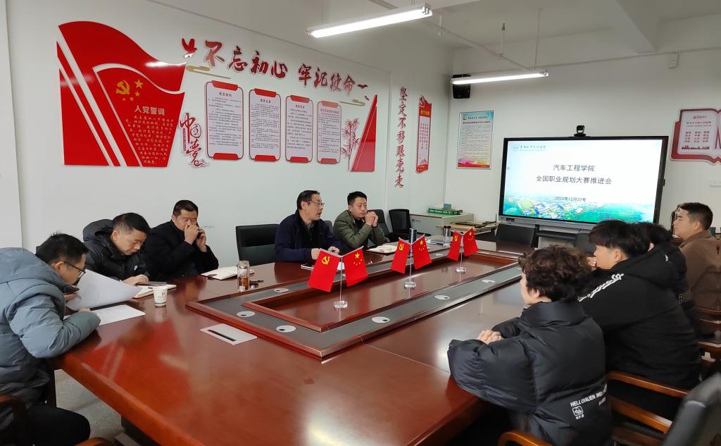 12月22日上午,汽车工程学院召开首届全国职业规划大赛备赛推进会。党总支书记王群、院长程洪涛、副院长沈先飞及大赛指导教师、参赛学生参加会议。