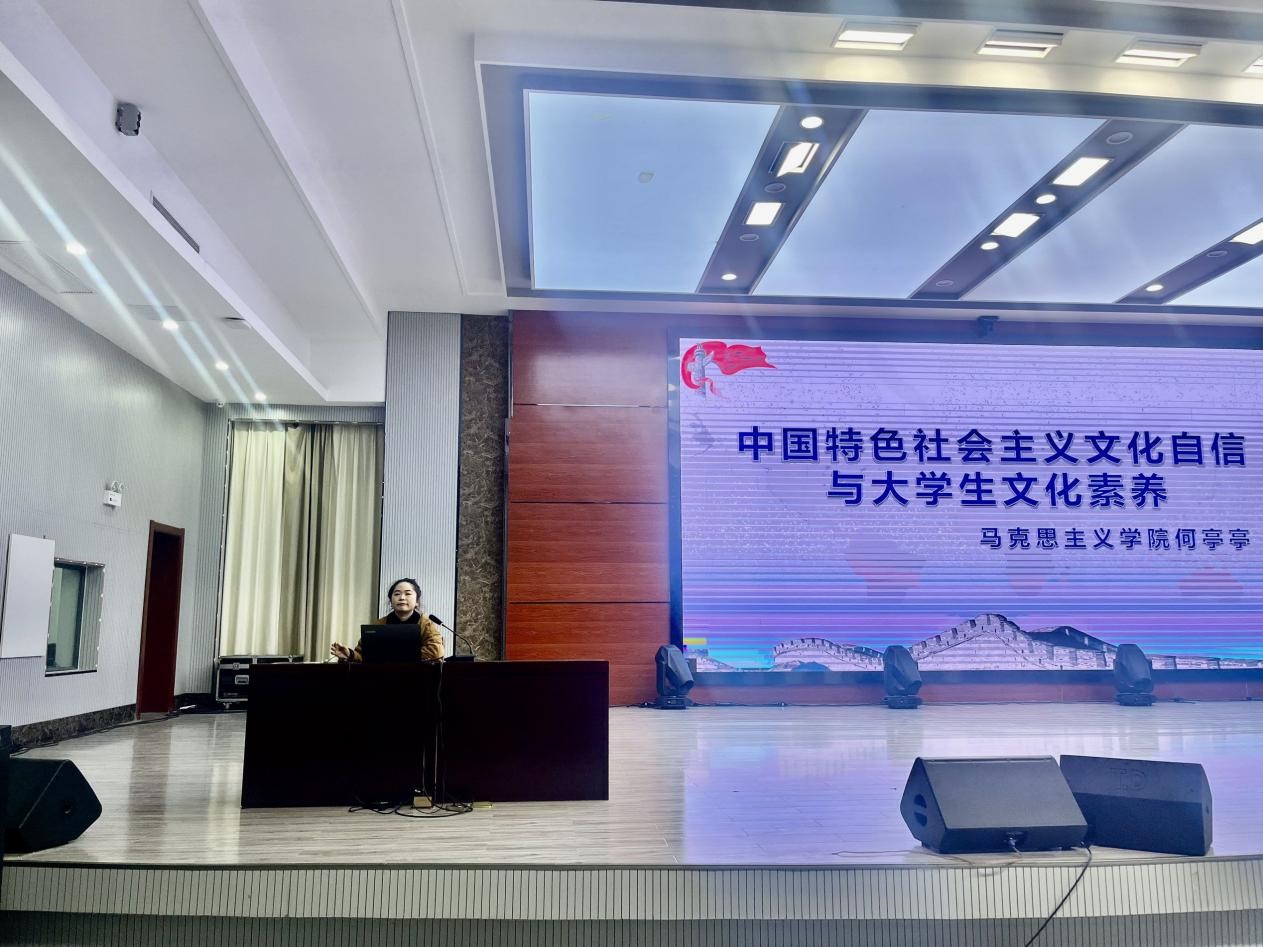 12月6日晚,信息技术学院在智造工业中心A栋学术报告厅举办12月“名师讲党史”讲座,主题为《中国特色社会主义文化自信与大学生文化素养》。马克思主义学院何亭亭老师应邀担任主讲,2023级全体学生参加讲座。