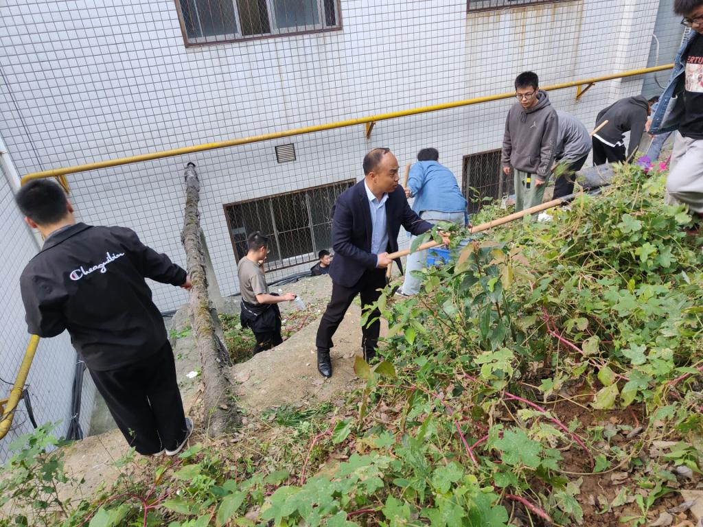 10月27日下午,农学院学生干部带领现代农业技术2101班、畜牧2101班同学,利用课余时间开展健行楼周边清洁卫生大扫除。学工副院长陈杰军亲自示范指导,主动融入到同学们积极打扫的氛围中。同学们积极参与,分工明确,认真负责,用自己的实际行动为学校增添了美丽的景色。