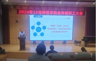 10月8日下午,师范学院在博学楼报告厅召开10月份全体教职工大会。会议由师范学院党总支书记张丹主持。